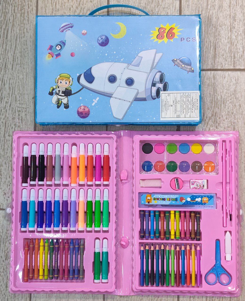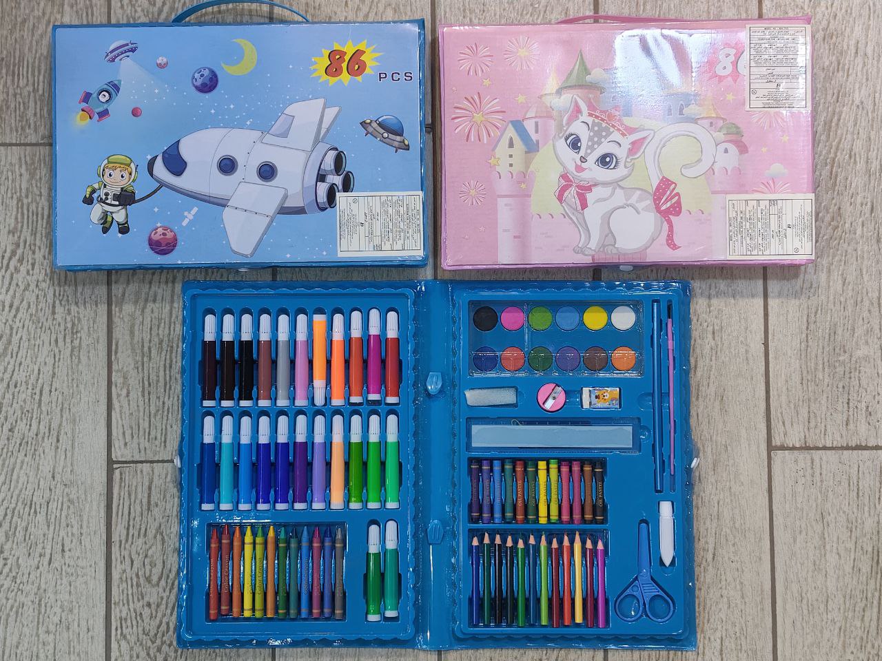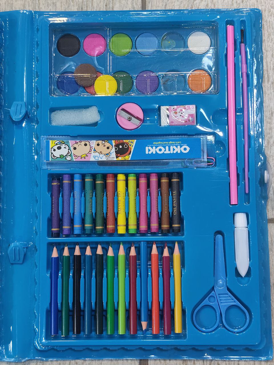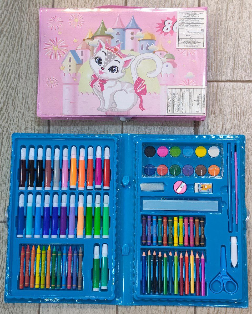 💜و استيكه و مسطره وبرايا ومقص و فرشه و جلو