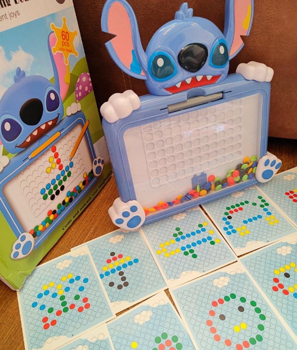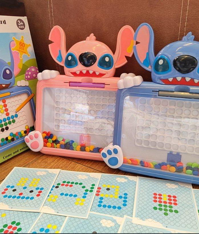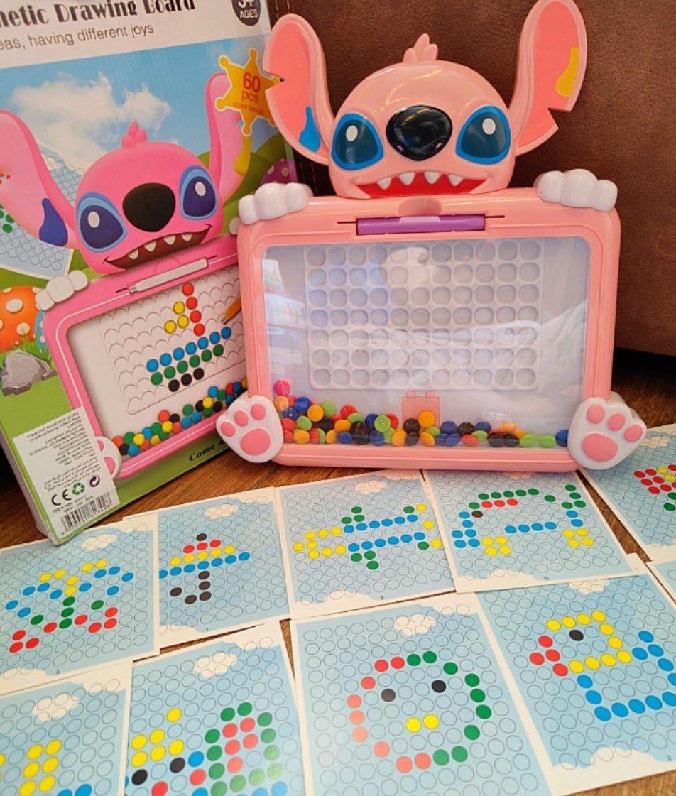 الصبوره المغناطيس الاستتش من الالعاب التعليميه الجميله بورد المنتسوري الاستتش المغناطيس لتنميه مهارات الاطفال عباره عن كروت كل كارت عليه رسمه وش و ظهر الطفل بيحط الشكل الي عايزه و بيقلد الرسمه بياخد من الدوائر الملونه بالقلم المغناطيس و بيفضل ماشي بيها يحطها في المكان المناسب عشان يكمل الشكل الي على الكارت بينمي مهارات الدقه و التركيز و بيقولي عضلات الايد اولادنا بيقضو قدامها وقت طويل بعيدآ عن أضرار شاشات الموبايل ممكن الاطفال يكتبو عليها الحروف أو الارقام أو يرسمو اي رسمه ماتريال ممتازه حجم كبير علبه شيك جدا